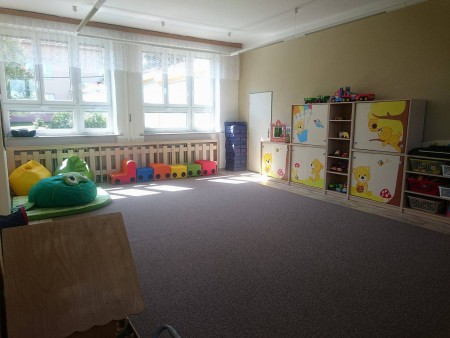 Naše třída se nachází v 1. patře dolní budovy MŠ. Je vybavena novým nábytkem, který plně vyhovuje nejmladším dětem, které začaly MŠ navštěvovat prvním rokem. Třída je rozdělena na dvě části. První část – pracovní se stolečky – zde probíhají veškeré výtvarné, pokusné či manipulační činnosti. Druhá část - odpočinková – je pokrytá kobercem a probíhá zde komunitní kruh, cvičení a také odpolední odpočinek dětí na lehátkách. Součástí třídy je místnost pro lehátka a lůžkoviny, umývárna, toalety a sprchový kout.
