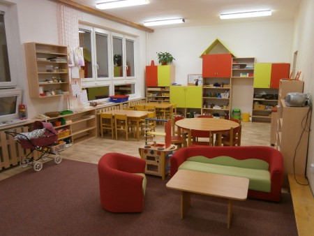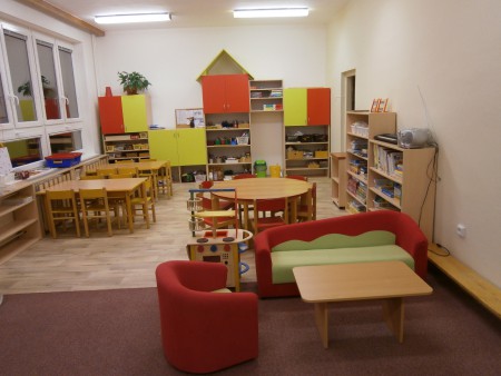 Využíváme prvky programu Začít spolu. Přesto, že je třída prostorově menší, snažíme se ji rozdělit do jednotlivých center aktivit, ze kterých si děti následně samostatně volí činnosti